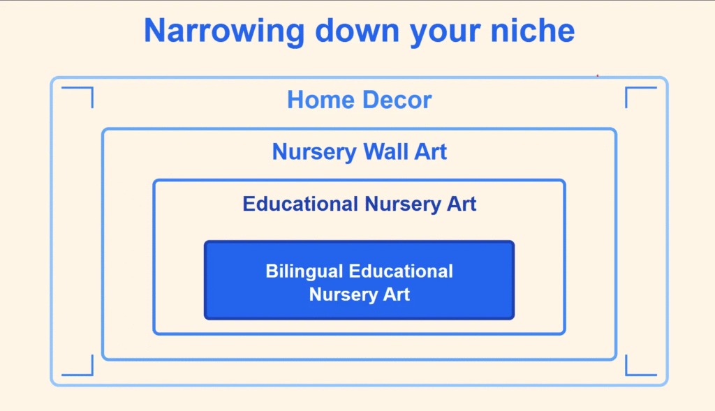 Let’s walk through a real example. Say you make home decor—a massive, crowded industry. Here’s how to carve out your corner: